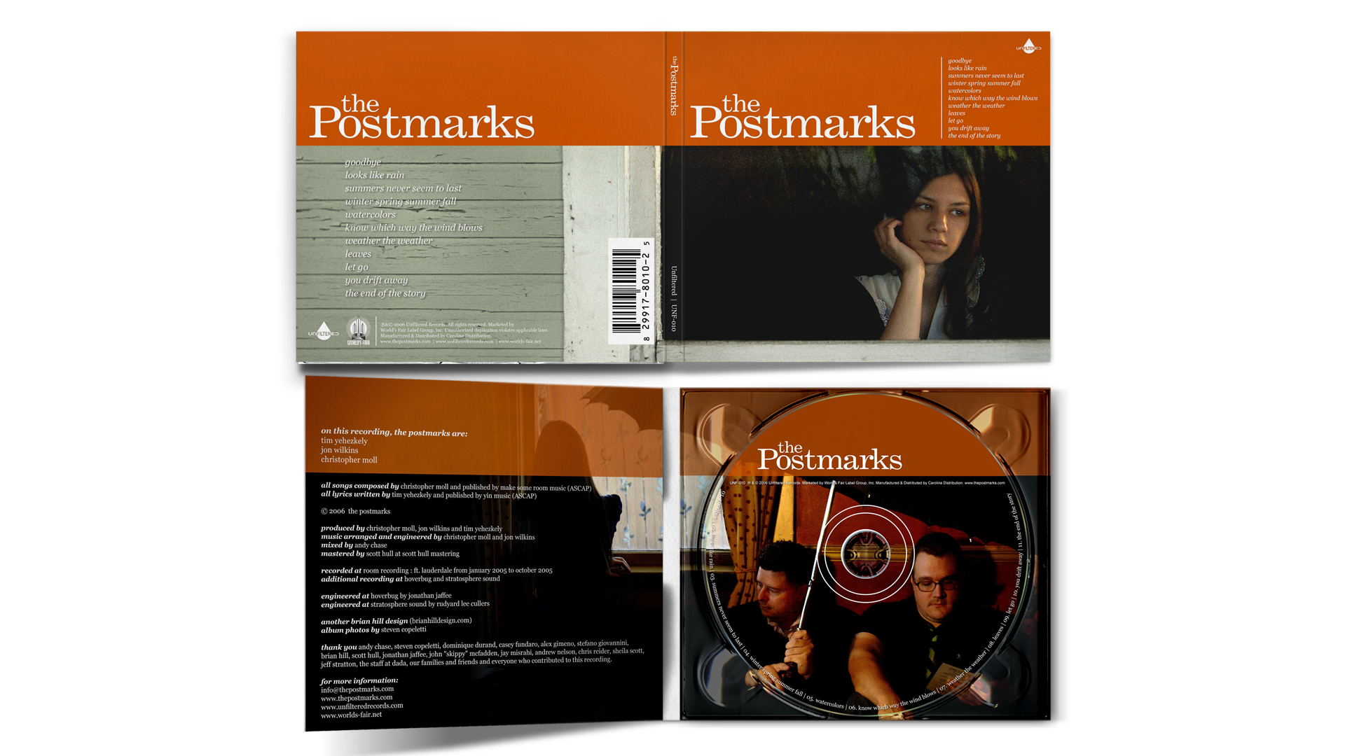 Chris from The Postmarks came to me in the spring of 2006 and told me he had a finished album for a project that he had yet to name. It was just “Project X”. He was sending it out to different producers and after courting Sean O’Hagen and even Richard Hawley among others, he eventually found the right fit with Andy Chase of Ivy fame. Chris and I had been Ivy fans since their first album. Andy producing the album was very exciting. Even more, that he wanted to release it on his very own label but more on that another time. So Chris and I started talking about the concepts and I felt the record was very special and very precious. It had a feeling of fall – chilly outside, grey, cloudy – and sitting inside looking through the window. He and I had talked about that fall feeling years earlier. It was something we both knew and felt being from the northeast. Anyway, when it came time for the cover photo, I knew exactly what I wanted. I played around with the idea of rain on the window, but ultimately felt that was too much. A few months later, Chris would come to me and ask if I’d like to play bass for the band for a one-off show in NYC for CMJ’s annual music festival and showcase in 2006 (which would lead to numerous tours, tv, radio and festival events).